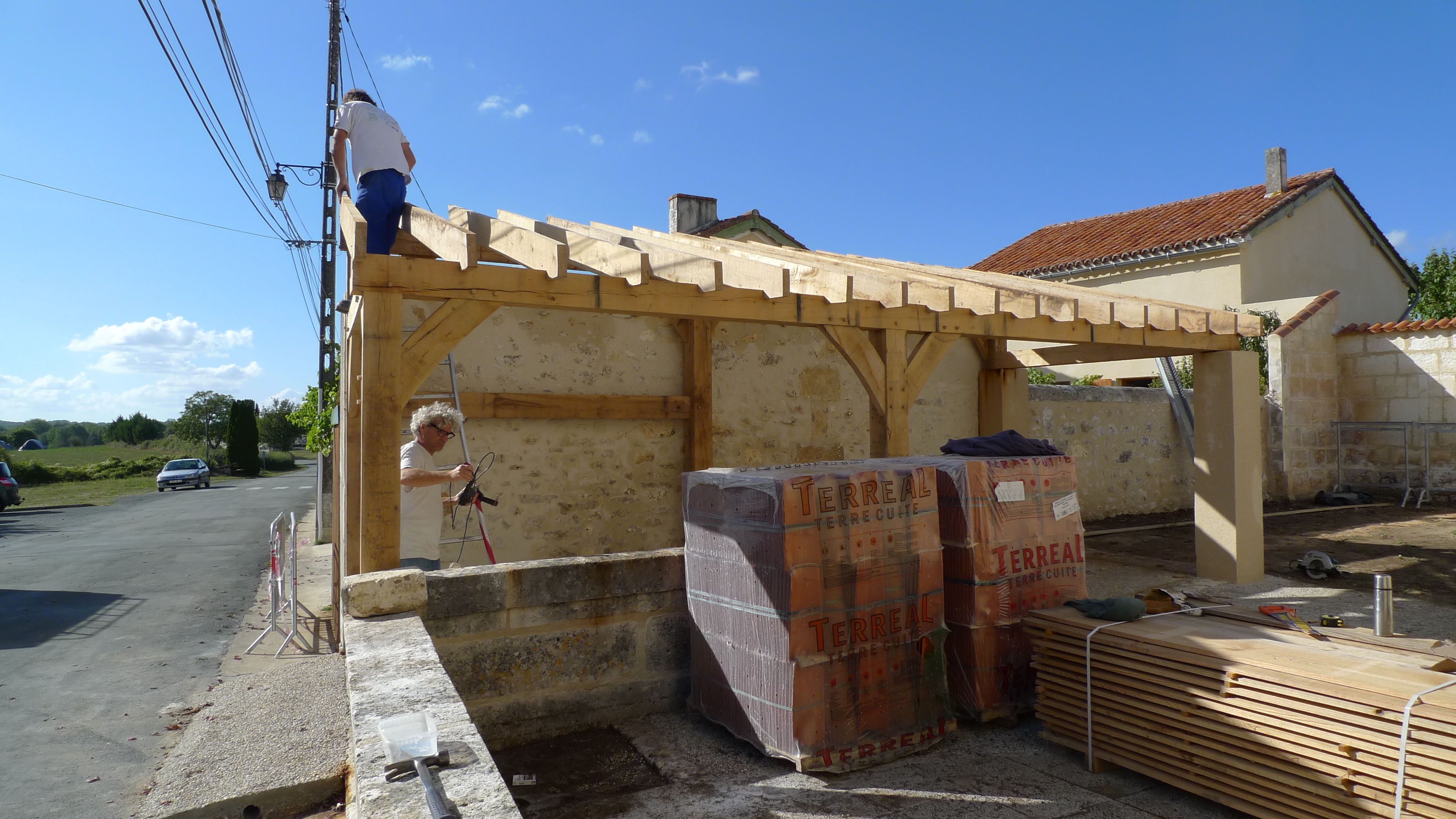 oak building, carpenter, carpentry, timber framer, timber framing, Dordogne, France, oak roof frame