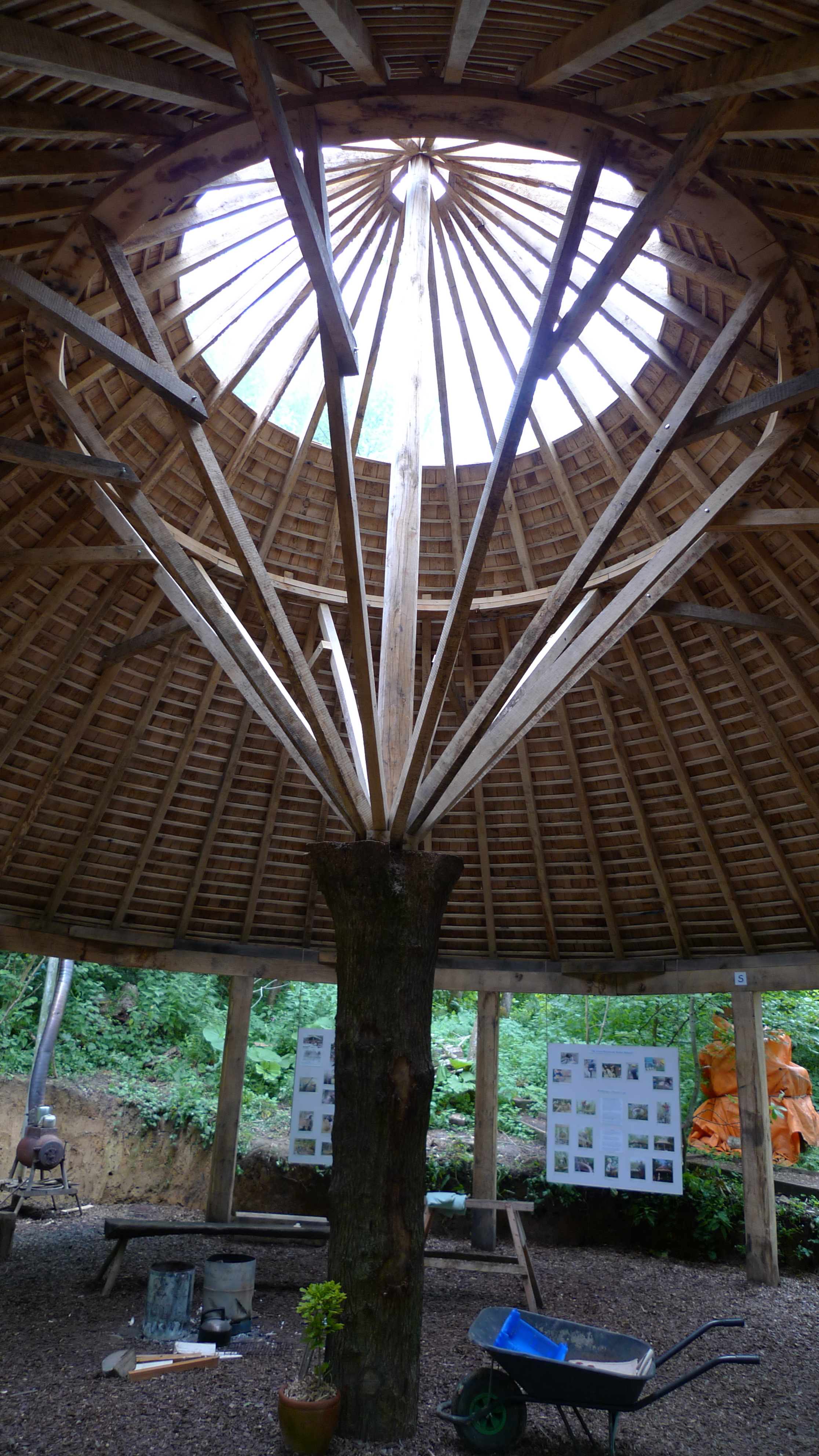 Green woodworking shelter - roof interior